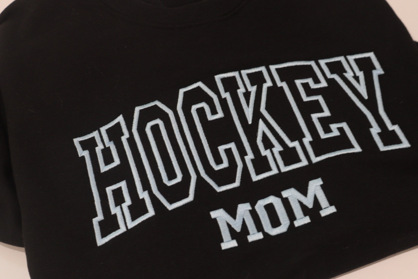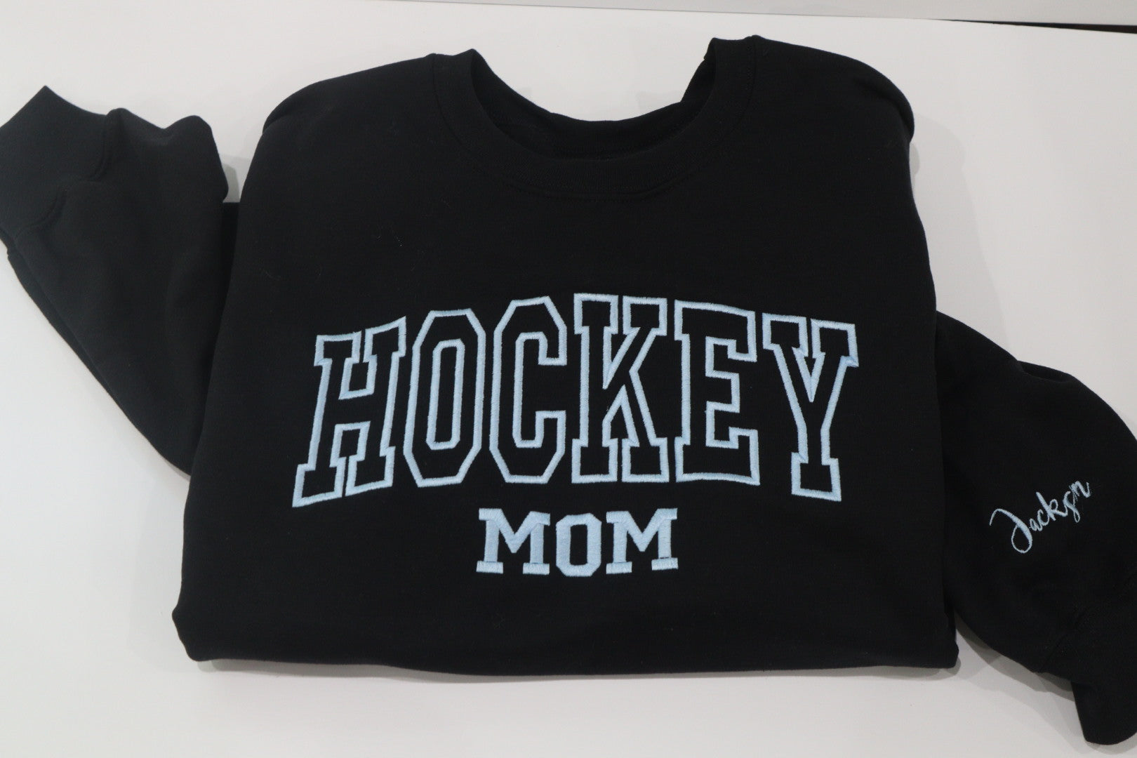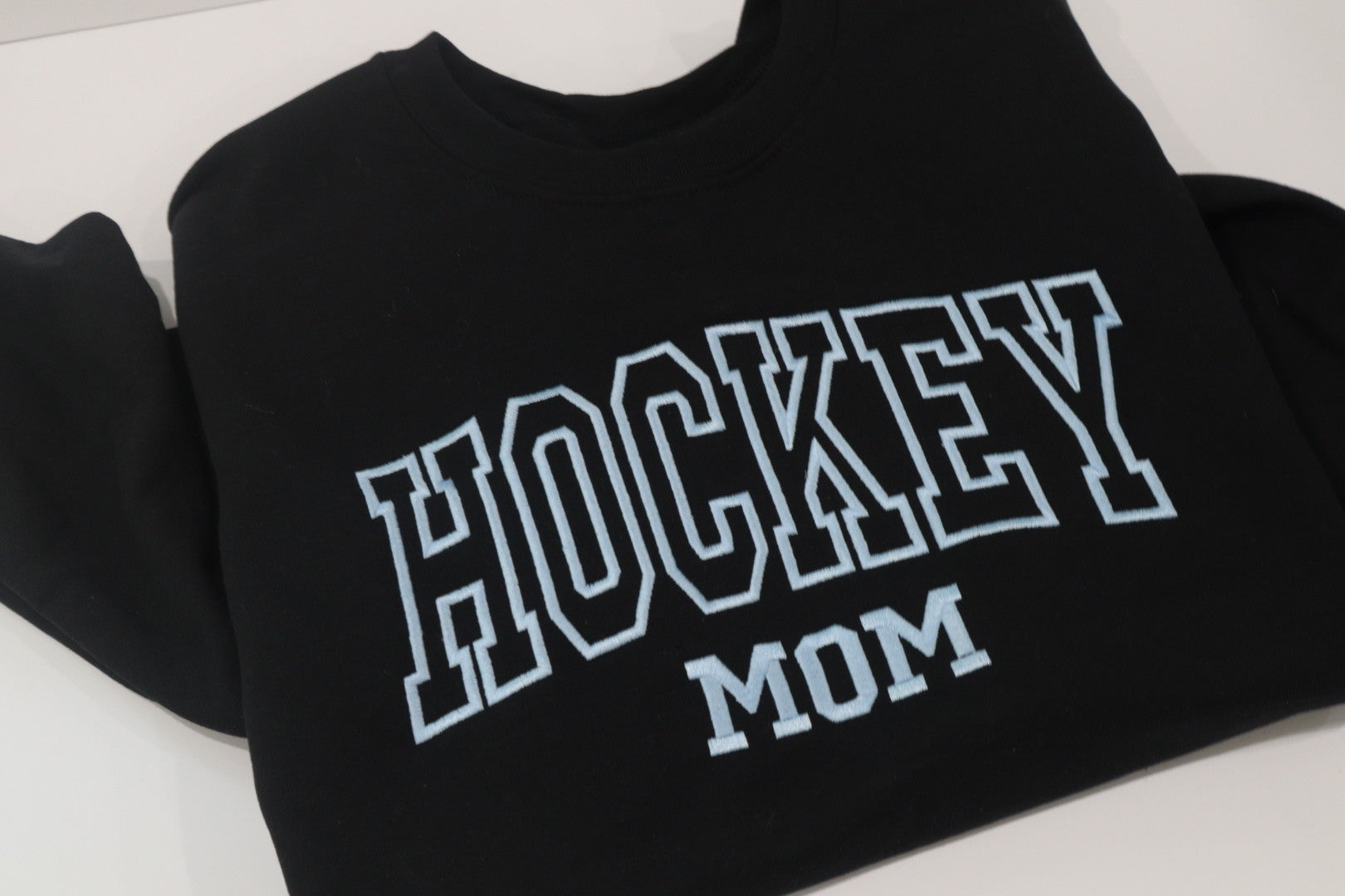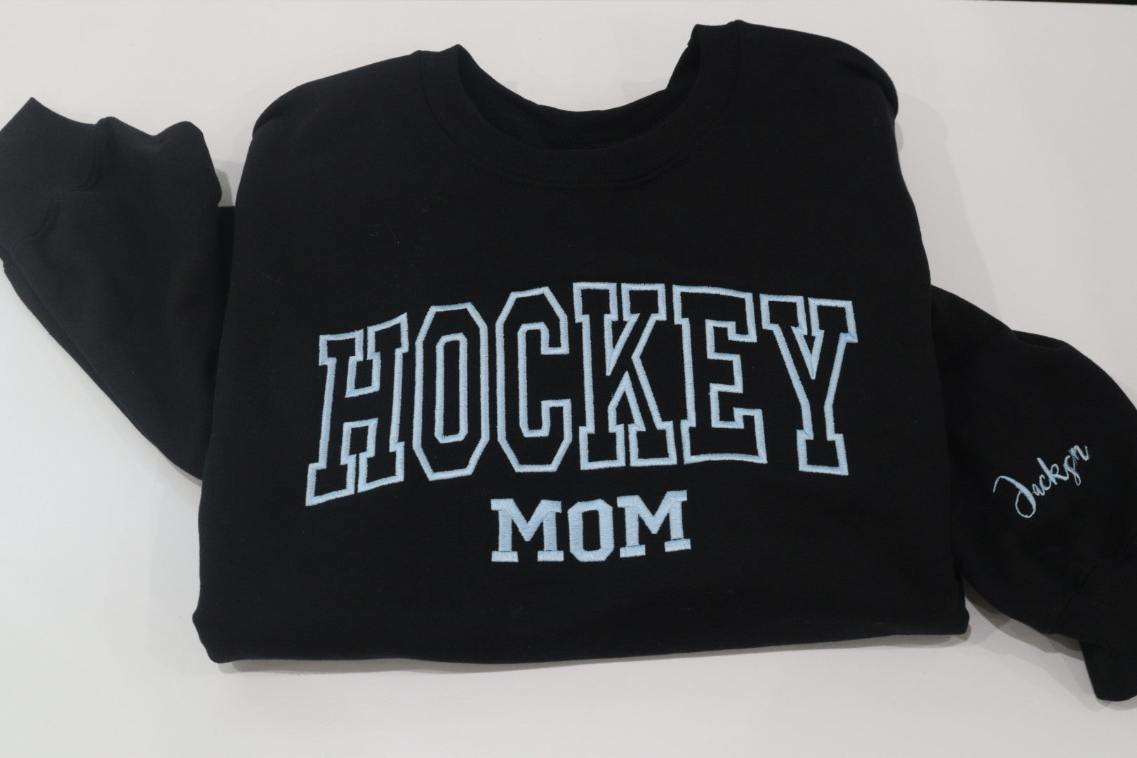 Black crewneck with baby blue thread unless specified, can pick any thread color!