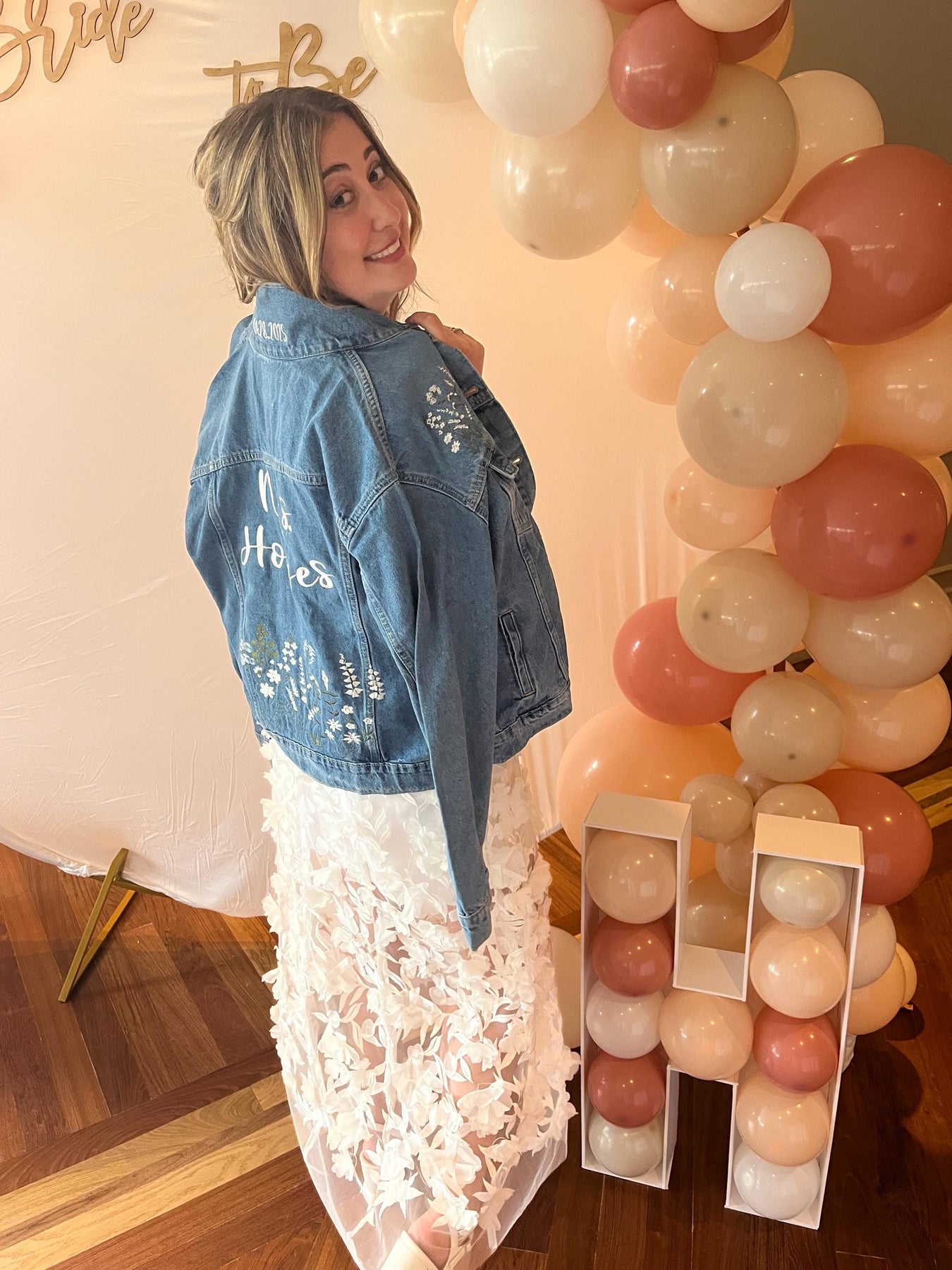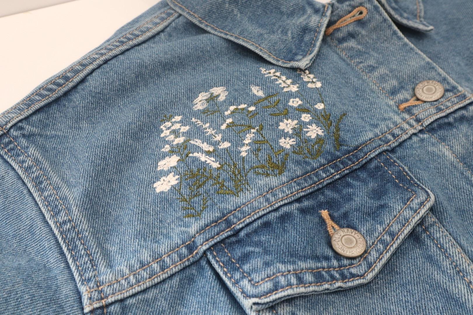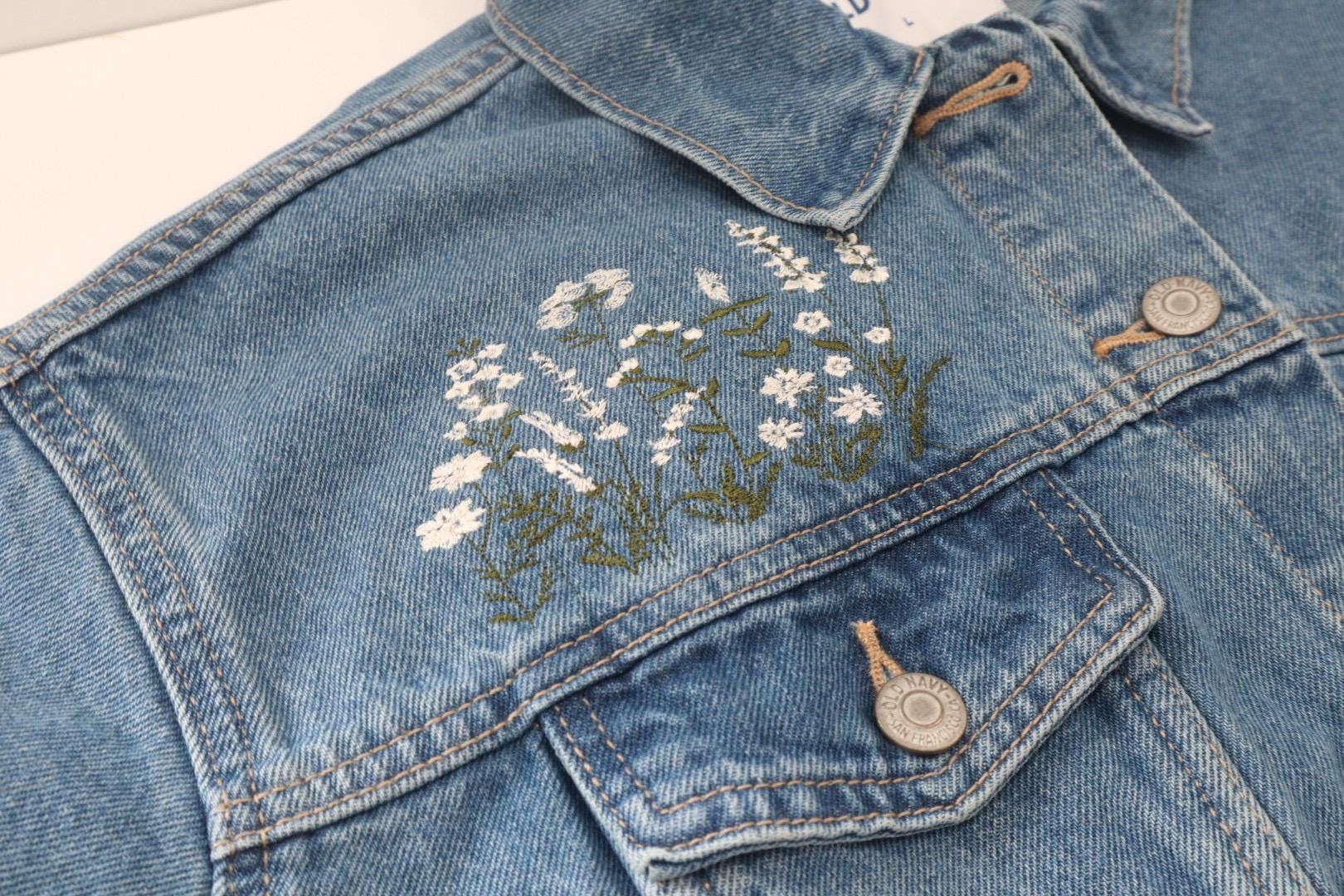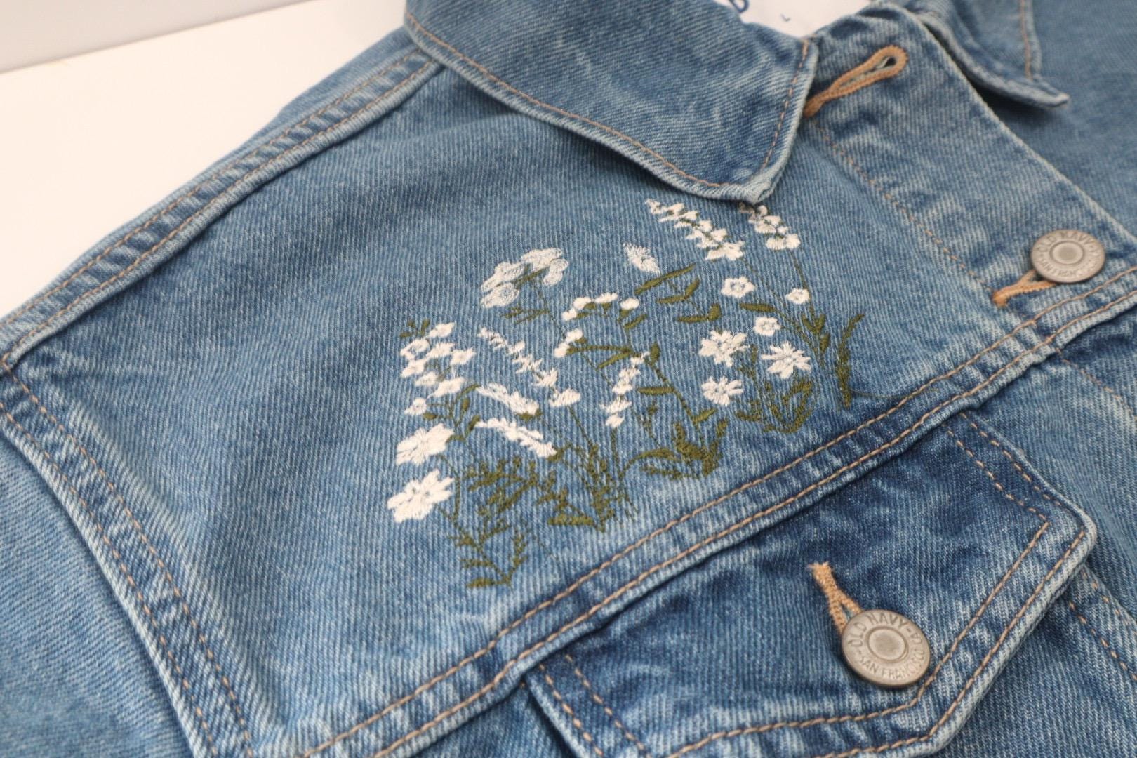 With white flowers! Choose back or front flowers or both! Front Flowes are on the right side of jacket unless specified.