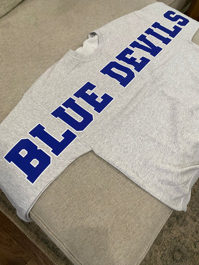 Blue Devils Banner Sweatshirt, Ash Heather Gray